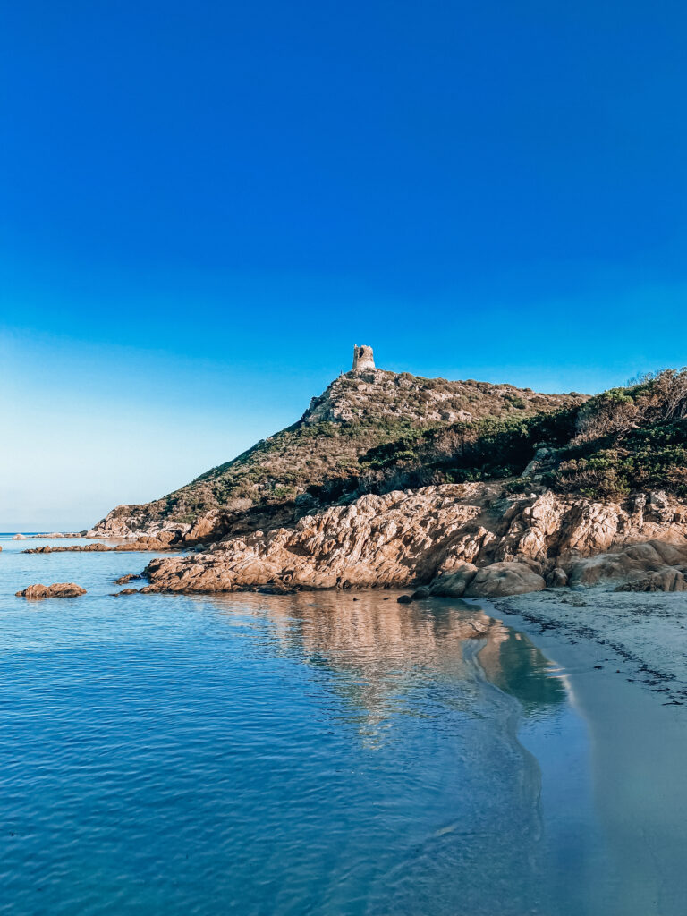 Z Torre di Porto Giunco rozpościera się widok na cały przylądek Carbonara. Dojście do wieży zajmuje ok. 15-20 minut z parkingu, osiągalne również w Birkenstockach. W dole widoczna jest bardziej kameralna niż Spiaggia di Porto Giunco, zatoczka – Cala Porto Guinco. Niestety po południu słońce zachodzi nad zatoczką, wtedy warto przenieść się na znajdującą tuż obok plażę.