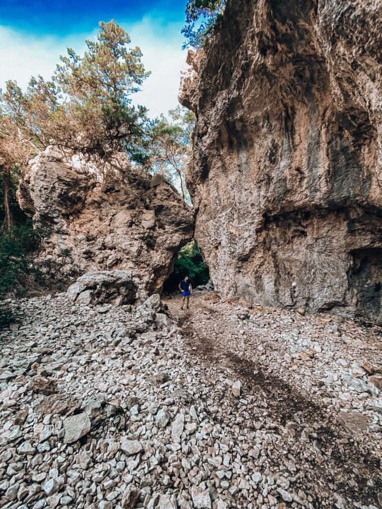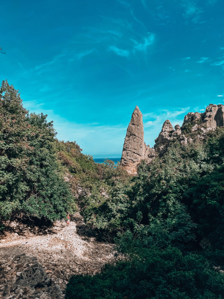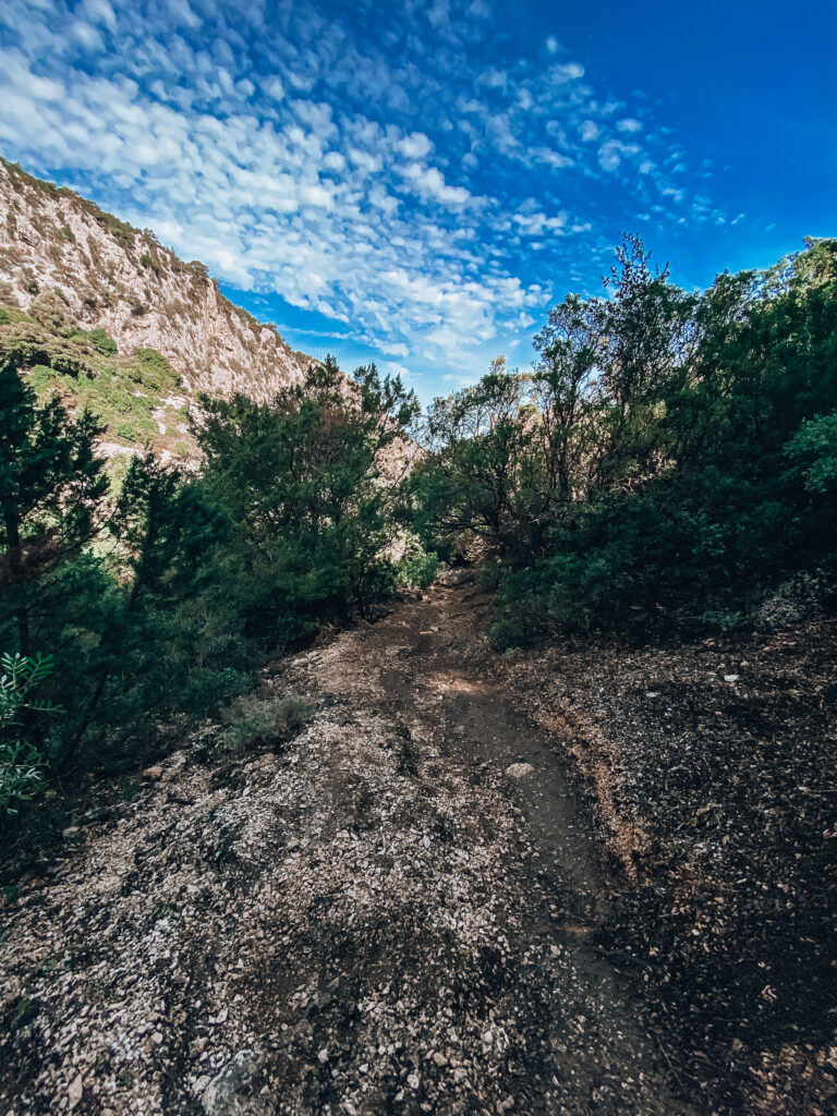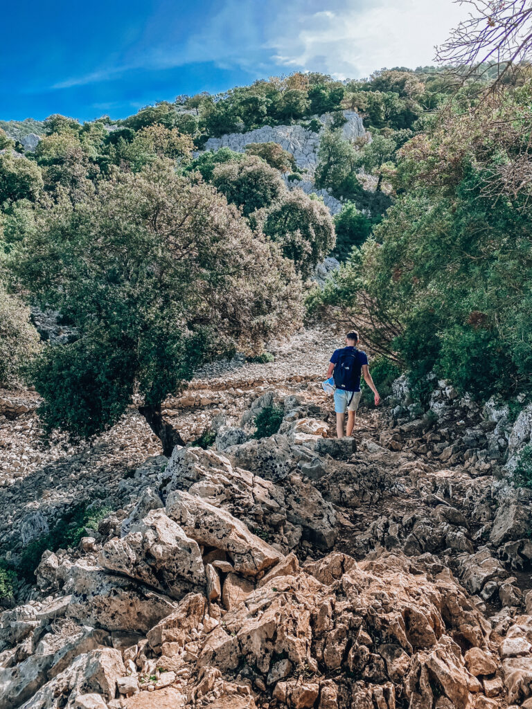 Jedynym sposobem aby dotrzeć do Cala Goloritzé jest wędrówka 3,5 km szlakiem bądź wynajęcie łodzi. My oczywiście udaliśmy się na wędrówkę. Trasa zaczyna się na parkingu Su Porteddu, na płaskowyżu Golgo. Znajduje się tutaj również mała restauracja – zdecydowanie warta odwiedzenia w drodze powrotnej (podczas posiłku z pewnością nie będziemy sami… koci towarzysze wiedzą jak skuteczne wyprosić smaczki).