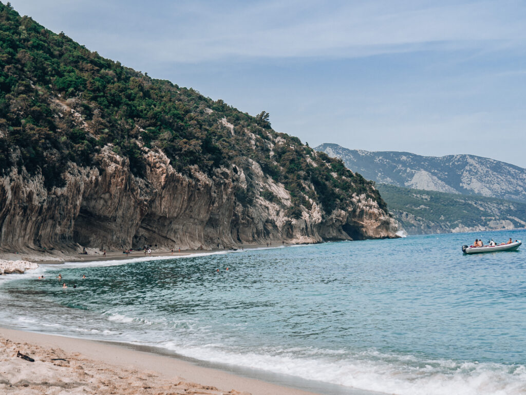 Na plażę kursują również tramwaje wodne z Cala Gonone – w obie strony. Cena w październiku 2022 r. wynosiła 20 euro za przejazd w jedną stronę. Polecamy wrócić tramwajem, gdyż w cenie mamy również podwózkę na parking przy Cala Fuili. Z tego co się zorientowaliśmy u innych plażowiczów, wynajęcie własnej łódki w Cala Gonone kosztuje ok. 100 euro poza sezonem, a w sezonie ok. 300-400 euro.
