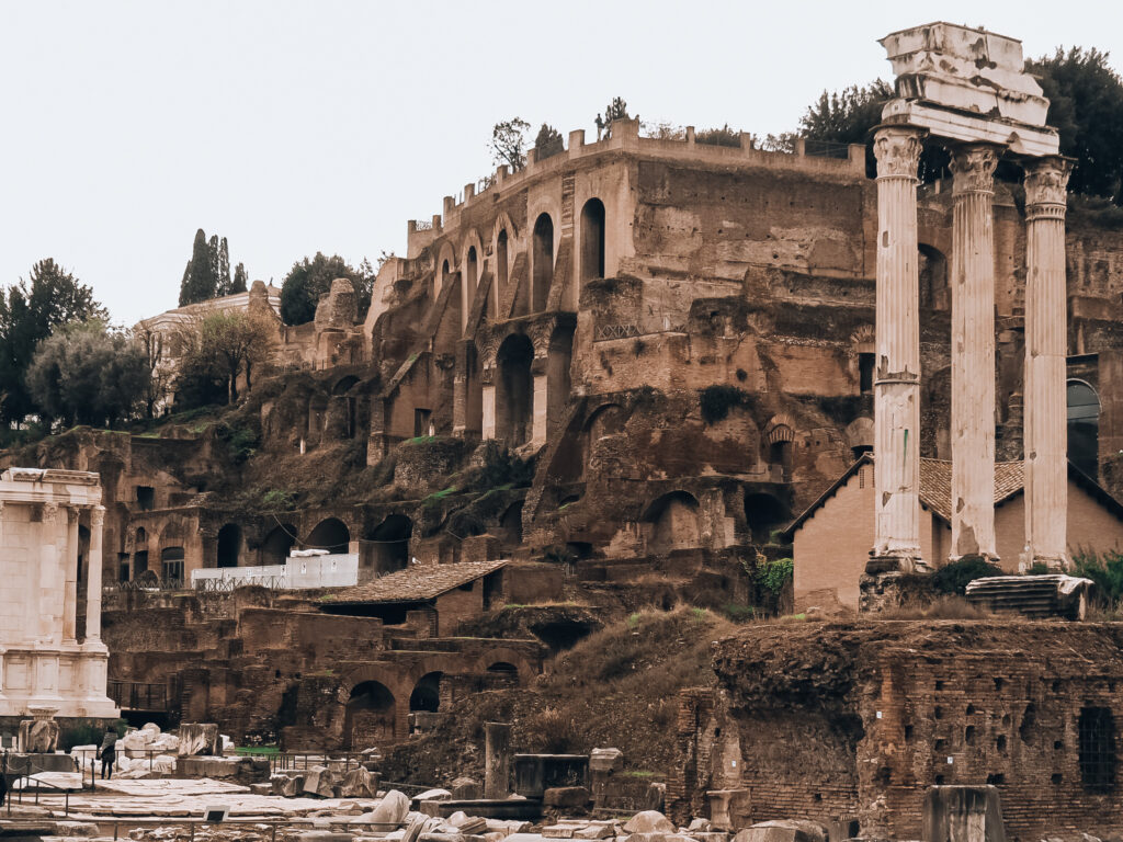 Na łączonym bilecie z Koloseum mamy również możliwość odwiedzenia Forum Romanum i Wzgórza Palatyn. Możemy pospacerować po rzymskich włościach, z kuchniami, łaźniami, świątyniami, mieszkaniami. Możemy podziwiać kunszt tworzonych wówczas budowli z niesamowitą dokładnością detali. Spacerując napotkamy również pracujących archeologów, którzy akurat pochylają się nad jakąś mozaiką. Należy się pełen zachwyt ich pracy, dzięki której ze skrawków wzorów odtwarzane są całe dzieła.