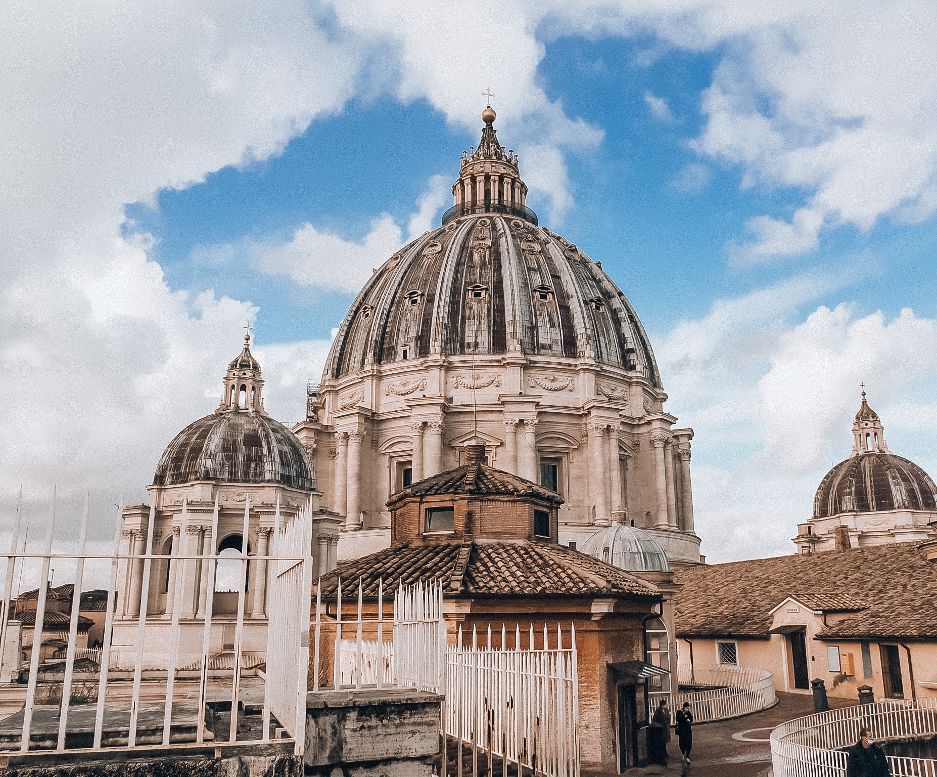 Zdecydowanie warto udać się również na kopułę Bazyliki Świętego Piotra. Z góry rozciąga się widok na cały Rzym i okolice, widoczne są również góry. Wstęp na kopułę jest płatny 6 bądź 8 euro. Wszystko zależy od tego, czy zdecydujemy się wejść 551 schodów, czy po części wjedziemy windą i pozostanie nam do pokonania jedynie 320 stopni. Należy mieć na uwadze, że ostatni etap wejścia na kopułę jest bardzo wąski. Kopuła jest okrągła i tak też się w pewnym momencie wchodzi, po skosie. Dla osób mających problemy z małymi przestrzeniami może to być dość nieciekawe doświadczenie.